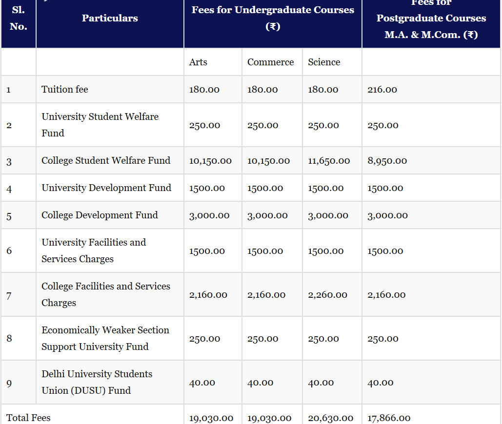 | Delhi University Students Union Fund | ₹40 | ₹40 |