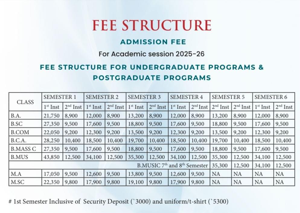12,000, totaling Rs. 36,000 over three years, payable in three-month installments of Rs. 15,000 each. A security fee is also required during the initial admission. Though general courses are provided, they necessitate further studies for better job prospects. The college has not had company visits for placements or internships in the past two years due to a scarcity of local opportunities. However, students with good academic performance may still find limited placement opportunities.