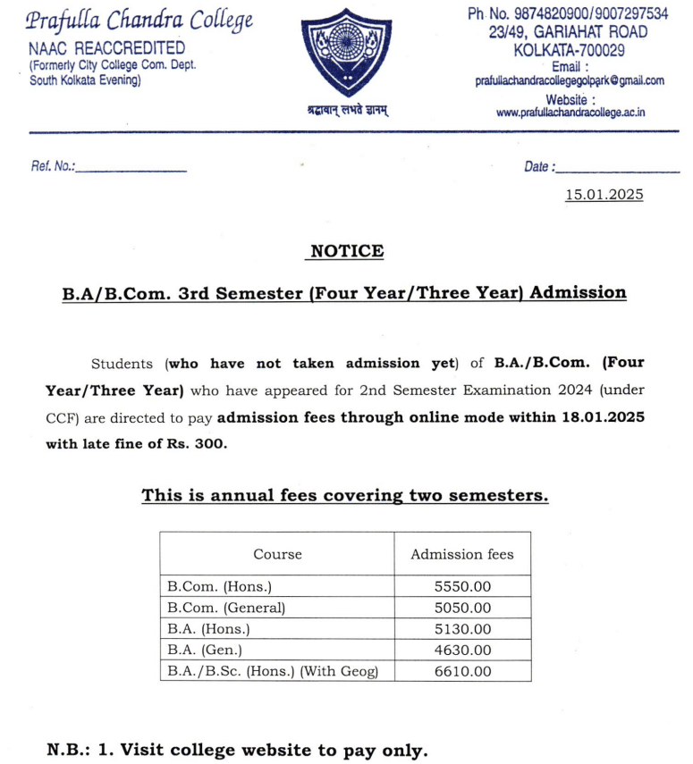 Prafulla Chandra College Kolkata B.Sc {Hons.} Geography Admission Process