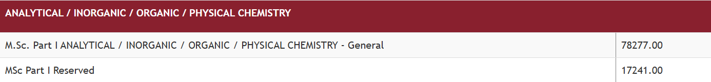 Ramnarain Ruia Autonomous College Mumbai M.Sc Analytical Chemistry is offered as 2 Years Full Time program. The minimum eligibility criteria for M.Sc is Graduation with 50%. The total fees for Ramnarain Ruia Autonomous College Mumbai M.Sc Analytical Chemistry in 2025 is ₹ 1.57 Lakhs for the complete course duration, which includes total tuition fees of ₹ 1.57 Lakhs. Earlier, the fees in 2024 - 2025 for M.Sc Analytical Chemistry was ₹ 1.52 Lakhs.