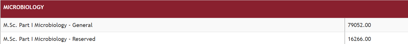 Some notable organizations offering internships include BARC, IIT-Bombay, and SRL Diagnostics, enhancing students' networking and industry contacts. For a 2-year Master's degree, the fees for general category students are approximately 75,000 INR for each year. Reservation category students benefit from a reduced fee structure due to scholarships and freeships, paying around 4,000 INR in the first year and 14,000 INR in the second year. The first-year fees for general category students, excluding journal and project fees, are 16,000 INR.