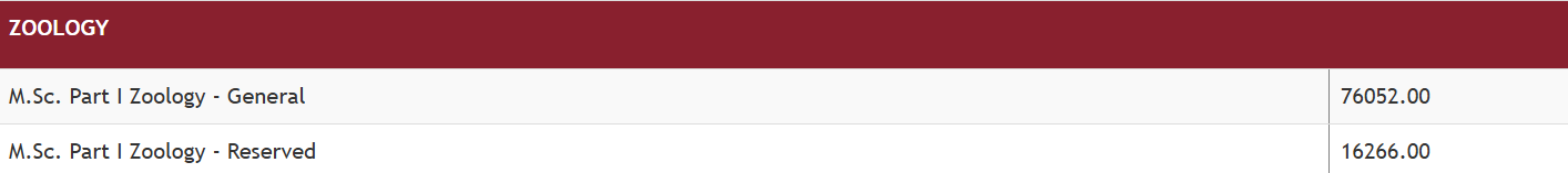 Ramnarain Ruia Autonomous College Mumbai M.Sc Zoology is offered as 2 Years Full Time program. The minimum eligibility criteria for M.Sc is Graduation with 50%. The total fees for Ramnarain Ruia Autonomous College Mumbai M.Sc Zoology in 2025 is ₹ 1.51 Lakhs for the complete course duration, which includes total tuition fees of ₹ 1.51 Lakhs. Earlier, the fees in 2024 - 2025 for M.Sc Zoology was ₹ 1.46 Lakhs.