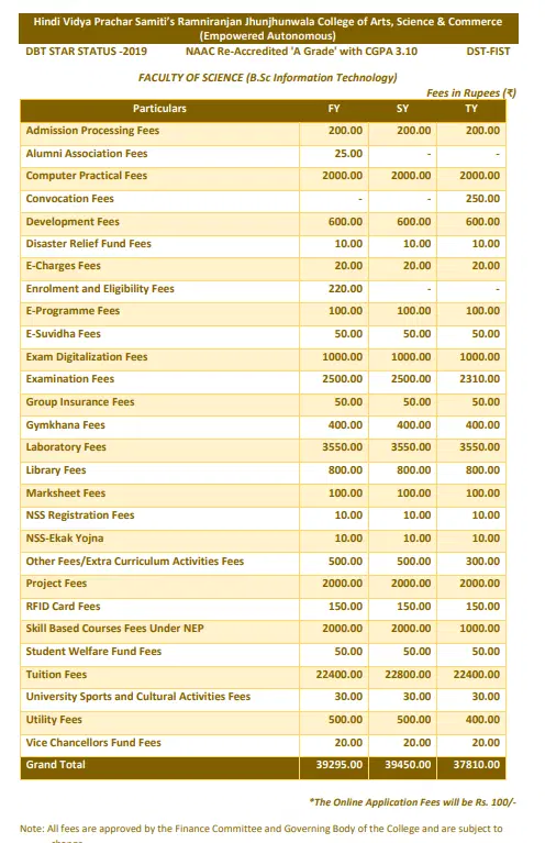 The placement record is strong, with companies like Cipla, Godrej, TCS, Infosys, Wipro, and Capgemini recruiting graduates. The active placement cell uses an online portal named CALYXPOD for resume building and sharing placement information. Although no internships are offered, students who perform well in exams receive monetary rewards, and financial aid is available for families in need. The annual fee for a Bachelor of Science in Information Technology is 37,895 rupees, covering two semesters, and is considered affordable.