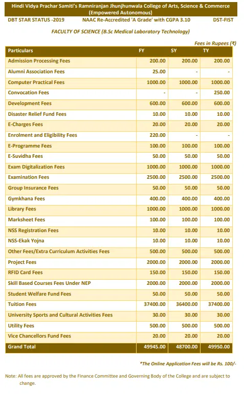 RJC B.Sc Medical Laboratory Technology fees 2025 is ₹ 1.49 Lakhs for the entire course duration.