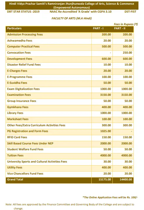 Earlier, MA Hindi fees at RJC was ₹ 21,255 (in 2019) for the entire course duration. This shows a fee increase of ₹ 8,320 over the year.