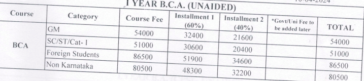 | Fees | Year 1 (in INR) | Year 2 (in INR) | Year 3 (in INR) |
