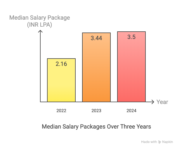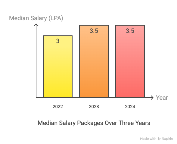 Ans. The trend for the past years' median packages was as follows: for 2022 UG placement, the median package was INR 3 LPA, and for 2023 and 2024 placement the median package remained constant at INR 3.5 LPA.