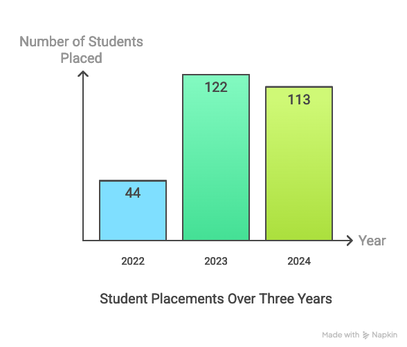 Given below is the year-wise statistical data of the students placed during the SHC Ernakulam Placement 2024: