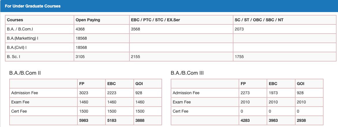 | Fees | Year 1 (in INR) | Year 2 (in INR) | Year 3 (in INR) |
