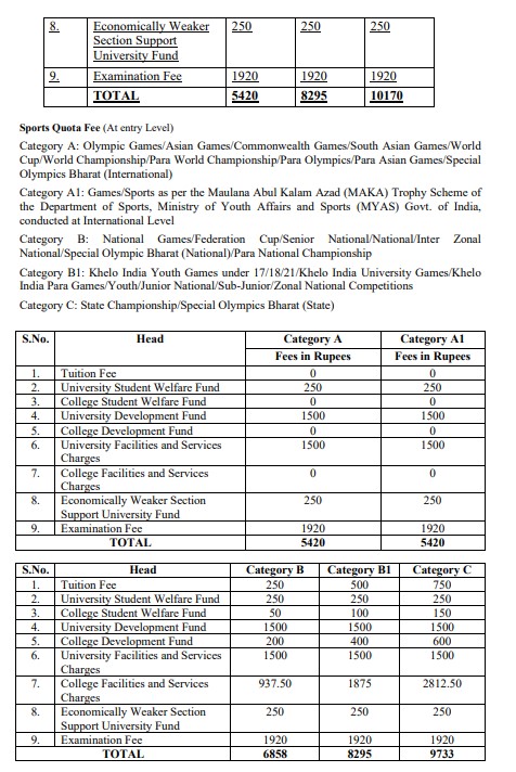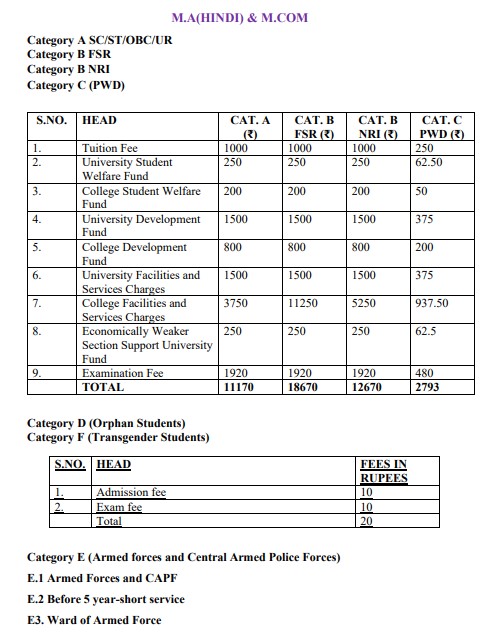 The total fee amounts to Rs. 9,370, encompassing a Tuition Fee of Rs. 1,000 and various welfare and development funds. For students in the PwBD category, the total fee is Rs. 2,343, including an online admission fee and an exam fee. Additionally, a Rs. 400 rebate is available for those opting out of printed study materials.