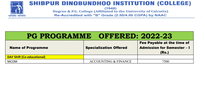 Dinabandhu Institution Howrah M.Com is offered as 2 Years Full Time program, with total intake of 60 seats. The minimum eligibility criteria for M.Com is Graduation. The total fees for Dinabandhu Institution Howrah M.Com in 2019 is ₹ 22,000 for the complete course duration, which includes total tuition fees of ₹ 22,000.