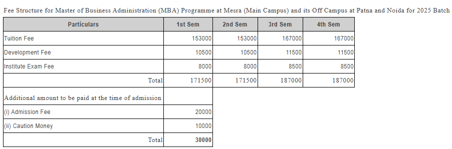 Earlier, MBA Human Resource Management fees at BIT Patna was ₹ 6.77 Lakhs (in 2024) for the entire course duration. This shows a fee increase of ₹ 70,000 over the year.
