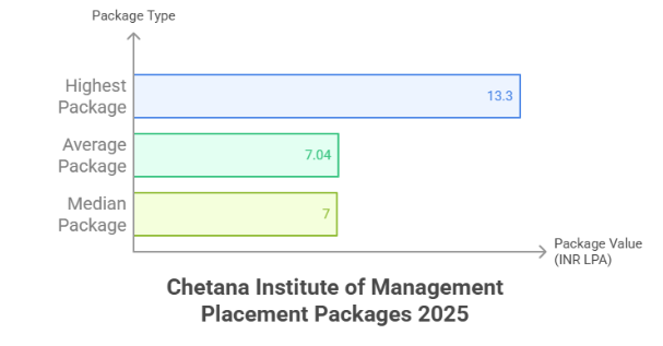Chetana Institute of Management and Research Placement Report 2025 has been released. As per the overall placement report of 2023–25, More than 200 companies took part in the PGDM placements, offering the highest package of INR 13.3 LPA, an average package of INR 7.04 LPA, and a median package of INR 7 LPA. The recruiters are Hindustan Unilever Limited, Bisleri, Titan, Zee TV, Godrej, Voltas, Mahindra, Nestle, Accenture, ITC, Yes Bank, Kotak, Naukri.com, Amazon, Blue Star, Amul, Airtel, TATA, Adani, Britannia, Kellogs, and more.