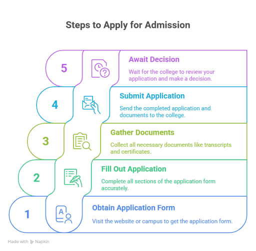 Ans. Students can apply for admission both online and offline. The application form can also be accessed on the official website of the college, or you can get it on campus. You need to fill the form, attach the required documents, and submit it with an application fee.