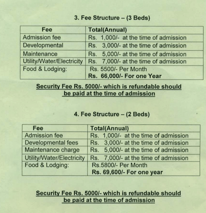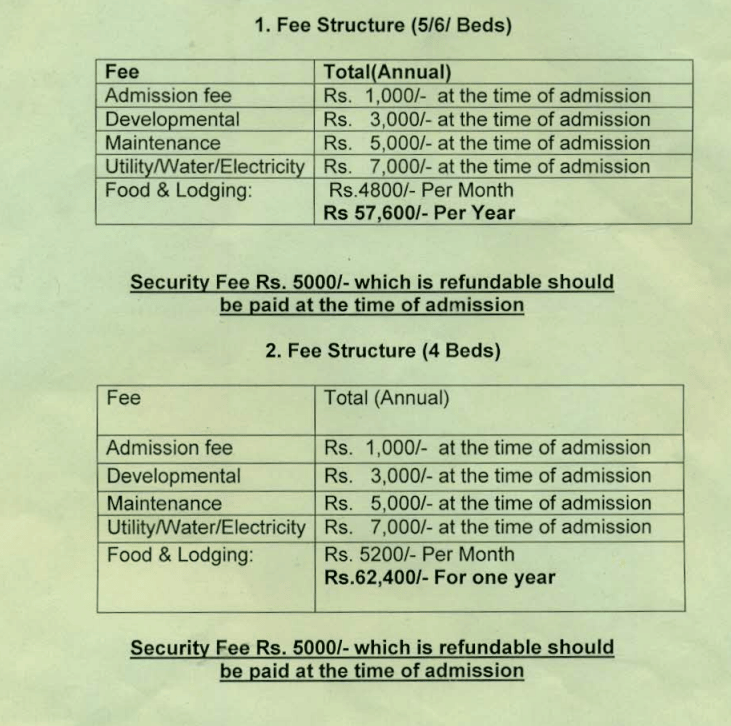 The college provides a hostel facility exclusively for girls, located off-campus. There is no college-provided hostel for boys, but private hostels are available nearby. The girls' hostel is equipped with basic amenities including 24/7 electricity, purified water, study tables, and cupboards. It offers a variety of meals throughout the week, including non-vegetarian options on Wednesdays and Fridays.