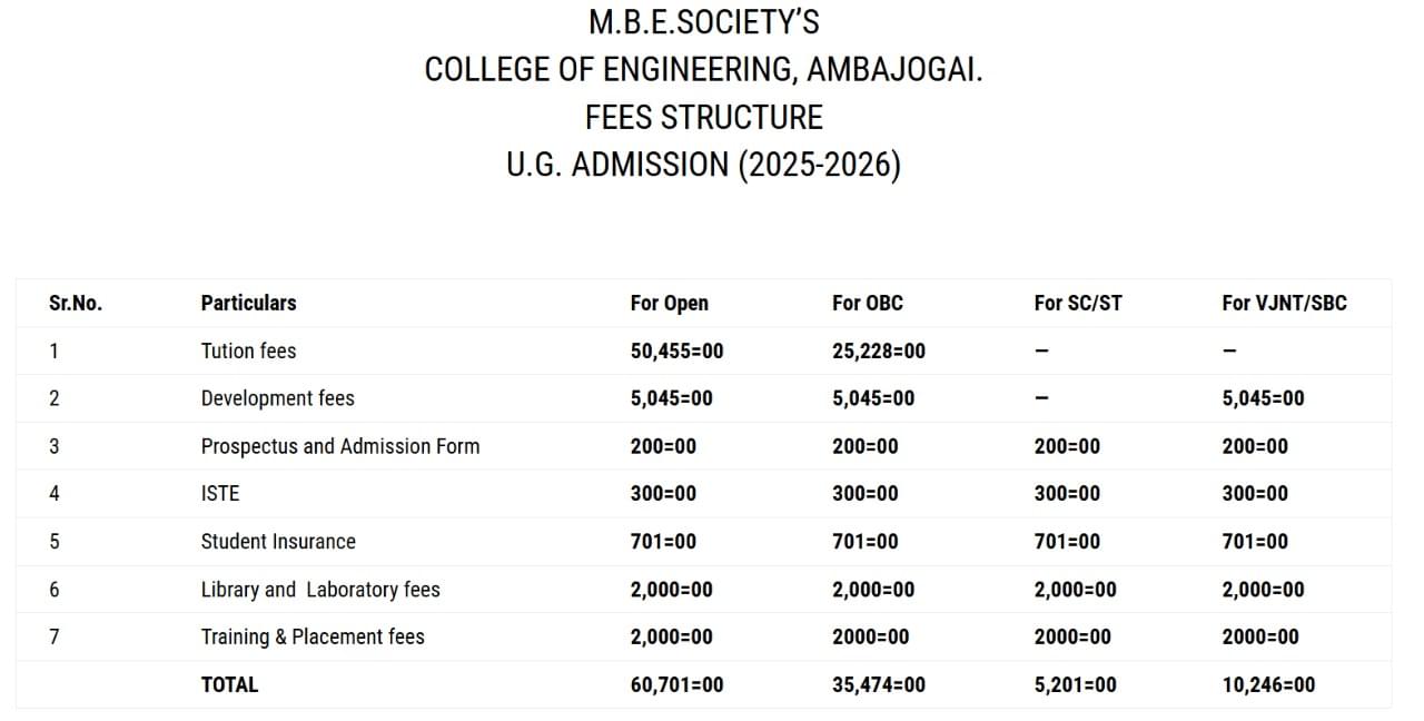 | Admissions process for Institute Level MHT CET 2025 [BE/B.Tech] | Sep 06, 2025 - Sep 13, 2025 |