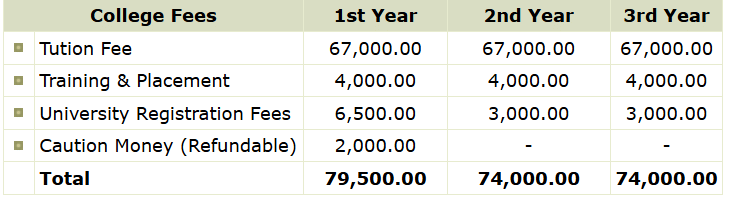 | Fees (2020 - 2021) | Year 1 (in INR) | Year 2 (in INR) | Year 3 (in INR) |