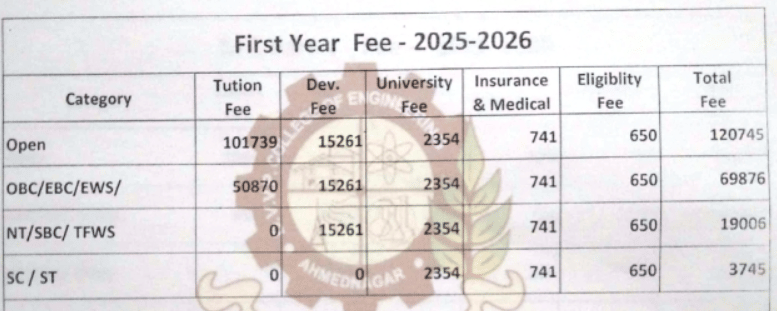 The admission process at Dr. Vittharao Vikhe Patil College of Engineering involves a merit-based selection through the Centralized Admission Process (CAP), focusing on HSC Science and JEE scores. The faculty is well-qualified, particularly in the Mechanical branch, with many holding M-Tech degrees or PhDs. While teaching quality is generally good, some strict faculty members can be challenging. The fee structure varies by category, with open category fees around 80,000 to 85,000 INR, and OBC, NT, SBC, and SC categories paying significantly less.