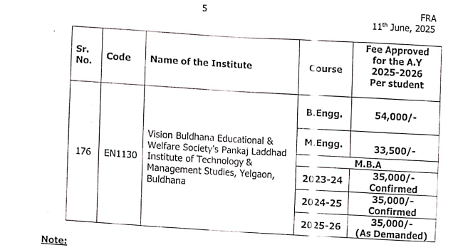 Pankaj Laddhad Institute of Technology and Management Studies Buldhana Hostel Fee is ₹ 12,000.