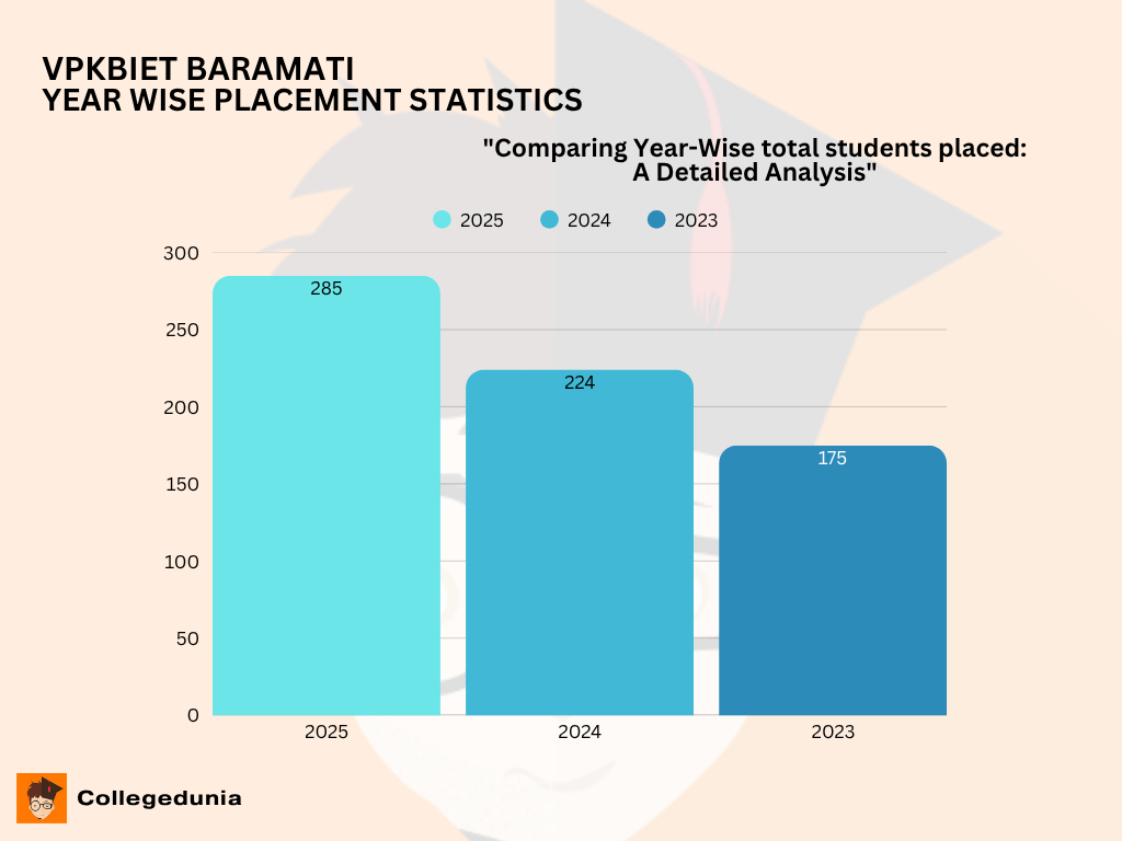 VPKBIET has released the 2025 placement report. In 2025, the highest package offered in B.Tech is INR 9.5 LPA, while the highest package in 2024 was INR 10.36 LPA. The average package in 2025 is INR 3.97 LPA, while in 2024 it was INR 4.2 LPA, and the lowest package in 2025 is INR 1.47 LPA. The top recruiters in 2025 are Capgemini, Cognizant, Solar Square, LTI Mind Tree, Adani Cement, Sulzer India Private Limited, Bharath Forge, and Infosys.