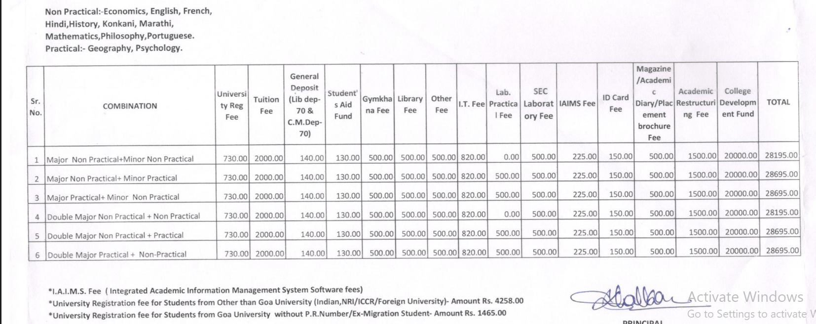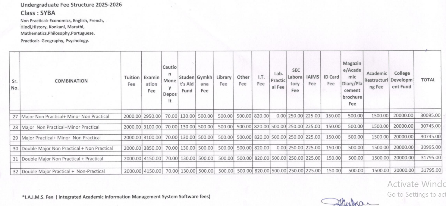 | Fee Type | Total Amount (INR) |
