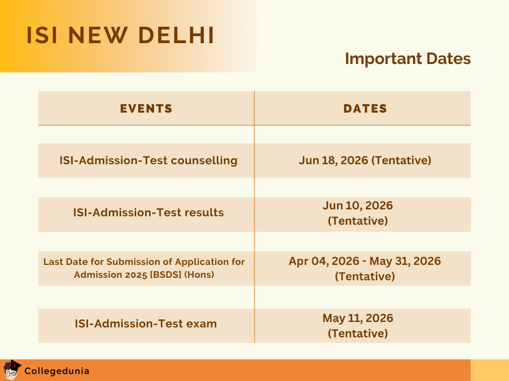 All the important dates for Indian Statistical Institute Delhi Admission 2025 have already been announced. The table below shows the tentative dates for the upcoming year.