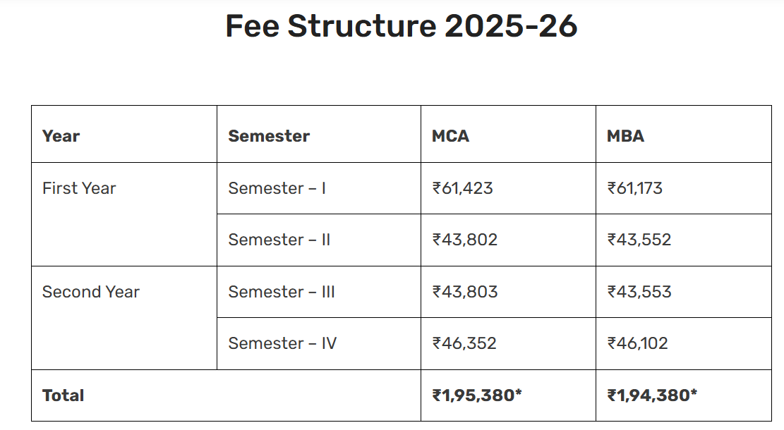 | Semester Wise Fees | ₹61173 | ₹43552 | ₹45553 | ₹46102 |