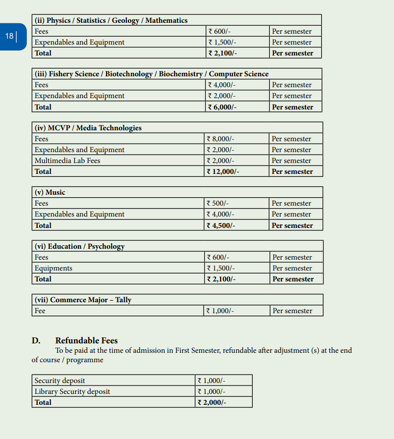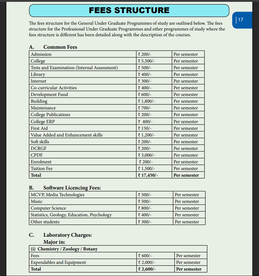 To enhance placement readiness, various projects are organized by council members and clubs. The annual college fee is about 20,000, covering development and other charges, and is uniform for all students. The college also offers several scholarships, with the National Scholarship Portal's Umbrella Scheme being the most popular, providing at least 24,000 in scholarship funds to many students.