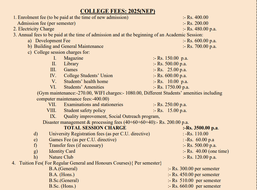 Students major in Microbiology with options to take Chemistry and Zoology/Physiology as complementary subjects. The fee for the Microbiology course is affordable at 25,000 rupees per year, and even lower for other courses as the college is government-run. An annual registration fee of roughly 1,000 rupees is also charged. The college does not offer job placements or internships post-graduation; students are encouraged to pursue further studies like an M.Sc. Scholarships such as SVMCM, INSPIRE, and K2 are available for economically disadvantaged and highly meritorious students.