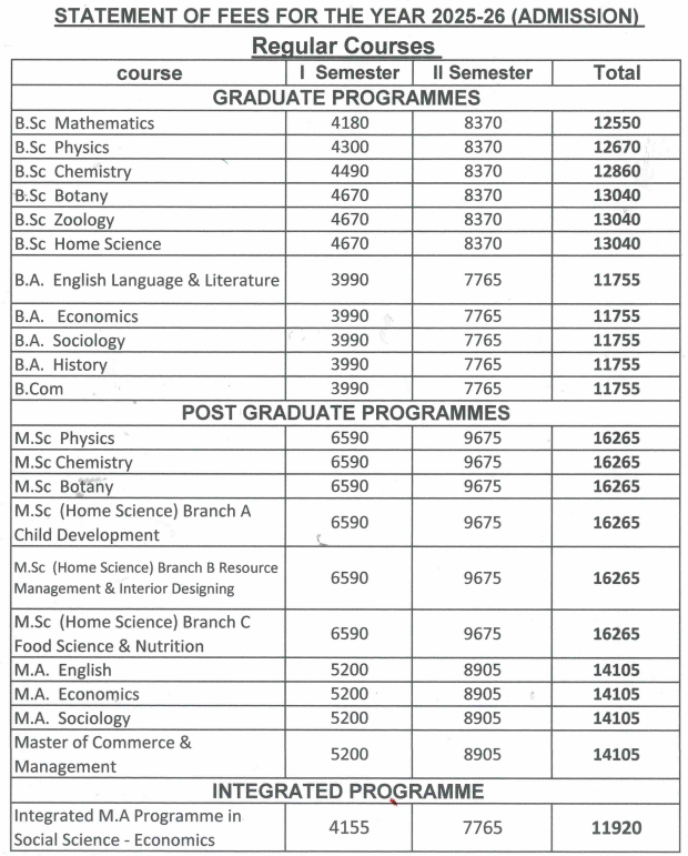 BA + MA Economics at St Teresa's College is a 5 Years Degree. The course is offered On Campus as a Full Time program. St Teresa's College BA + MA Economics First Year Fees is INR 11,920 for 2025.