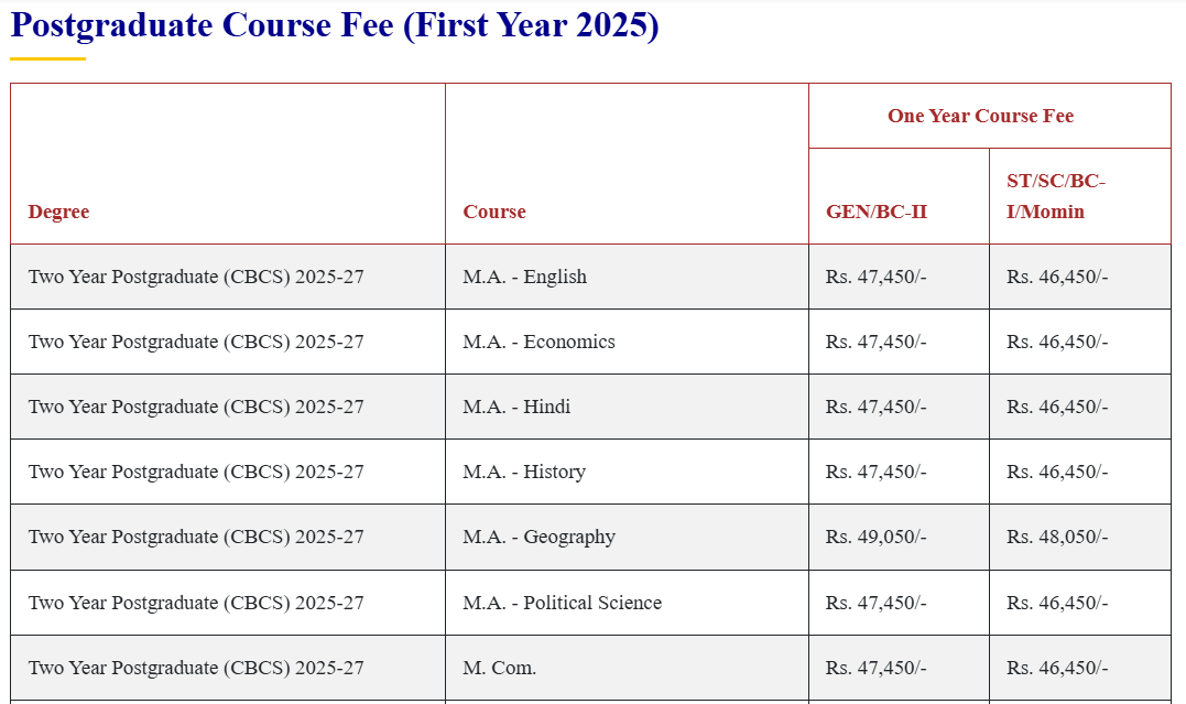 | Fees (2025 - 2026) | Year 1 (in INR) | Year 2 (in INR) |