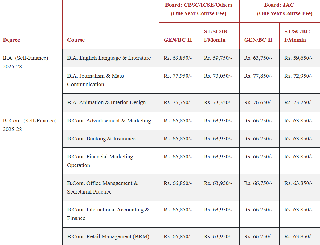 However, students belonging to ST, school, and OBC categories can apply for scholarships that cover up to 80% of the fee. For example, ST category students have benefited from the Jharkhand scholarship, paying only 43,000 INR annually after the scholarship is applied.