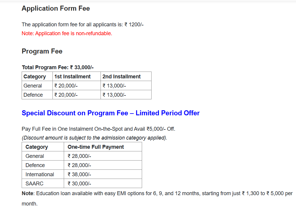 | Fee Type | Total Amount (INR) |