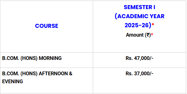 Bhawanipur Education Society College in Kolkata offers a B.Com program with a merit-based admission process. After Class 12 results, candidates need to submit an online application with a small fee, and the college releases up to three merit lists. Those with over 55% usually qualify for admission. The first-year fee for B.Com is INR 49,800, and subsequent years cost INR 44,800. Classes are offered in three shifts, and facilities include air-conditioned classrooms with modern teaching aids.