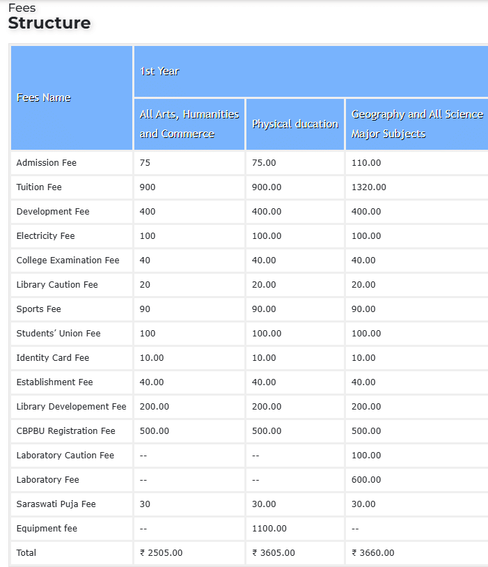 | Tuition Fees | ₹2505 | ₹1820 | ₹1820 | ₹1820 |