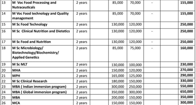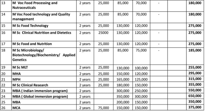 Earlier, M.Sc Food Technology fees at Padmashree Institute of Management and Sciences Bangalore was ₹ 1.6 Lakhs (in 2024) for the entire course duration. This shows a fee increase of ₹ 90,000 over the year.