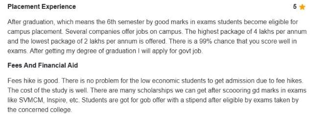 - The availability of campus placements is also high, and success is also high among students who perform well academically.