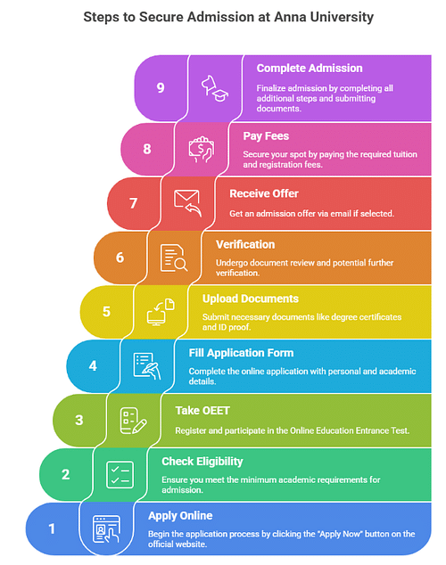 Every applicant must take and pass the OEET (Online Education Entrance Test) organized by Anna University. Candidates will be shortlisted based on their OEET scores.