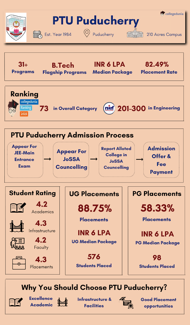 • Long-standing Government College: PTU was started in 1984 and has been a trusted name in engineering education in Puducherry ever since.
