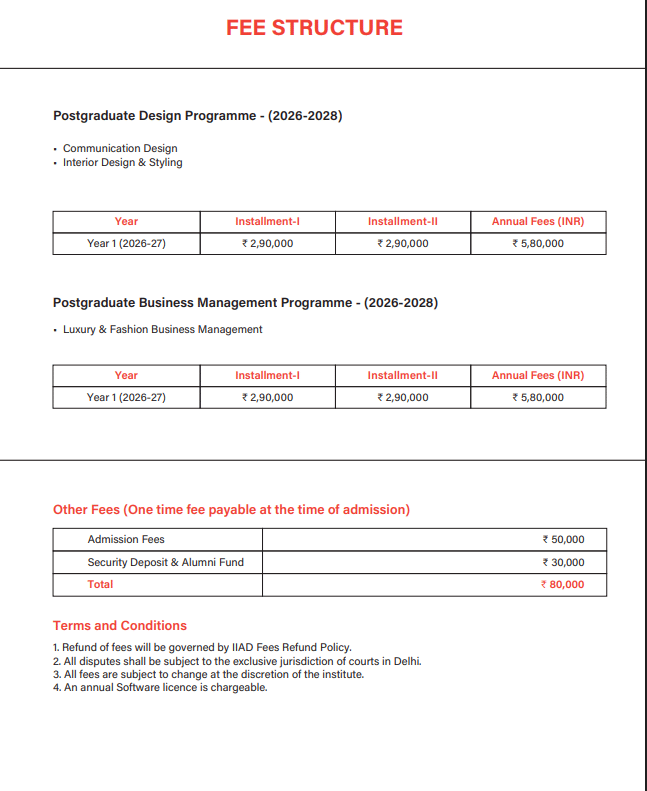 Earlier, M.Des Communication Design fees at Indian Institute of Art and Design New Delhi was ₹ 10.05 Lakhs (in 2025) for the entire course duration. This shows a fee increase of ₹ 2.35 Lakhs over the year.