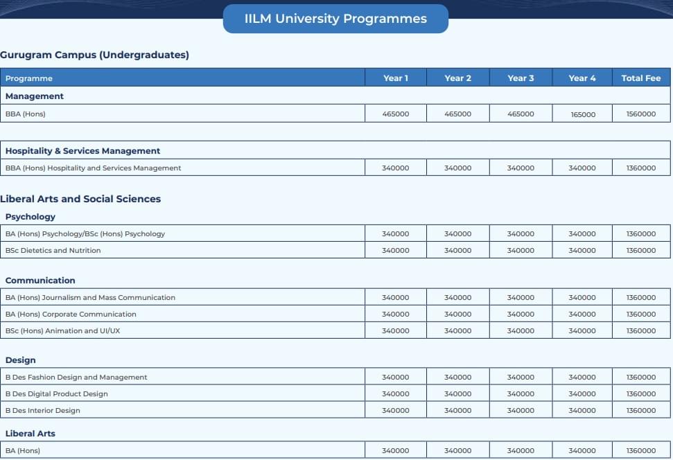 - The total fees for the BBA {Hons.} program at IILM Institute for Business & Management Gurgaon is ₹ 13.6 Lakhs.