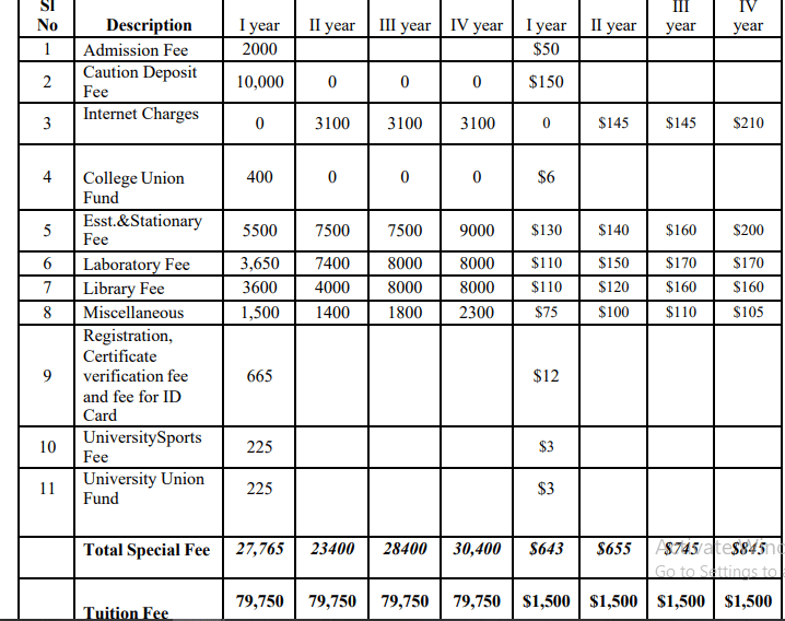 | Fee Type | Total Amount (INR) |
