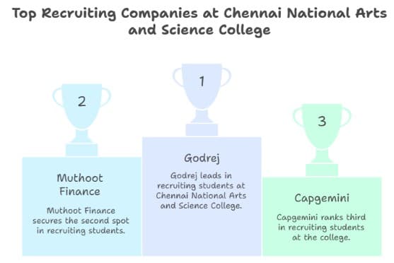 The Chennai National Arts and Science College placement report has not yet been released. According to the official data of the college, the top recruiting companies are Godrej, Muthoot Finance, Capgemini, Sutherland, Inspirisys, and Allsec Technology, in which 100+ students have been successfully recruited.