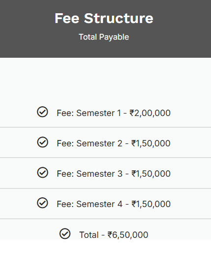 | Semester Wise Fees | ₹150000 | ₹100000 | ₹100000 | ₹100000 |