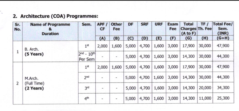 25 Feb, 2026 College of Architecture Ropar has released the Fee structure 2026-27 for B.Arch programs. The total academic fee is ₹ 4.55 Lakhs.