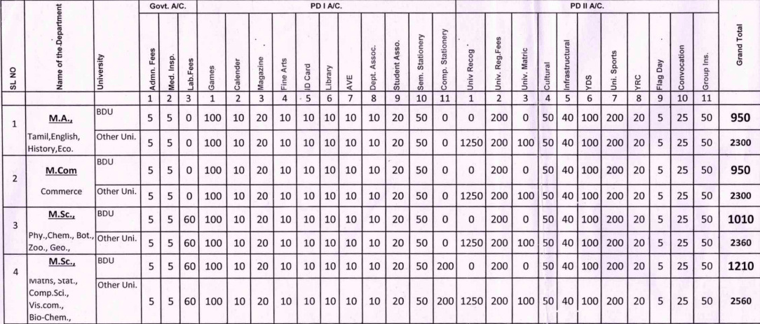 Periyar EVR College Tiruchirappalli M.Sc Chemistry is offered as 2 Years Full Time program. The minimum eligibility criteria for M.Sc is Graduation. The total fees for Periyar EVR College Tiruchirappalli M.Sc Chemistry in 2025 is ₹ 4,720 for the complete course duration, which includes total tuition fees of ₹ 4,720.