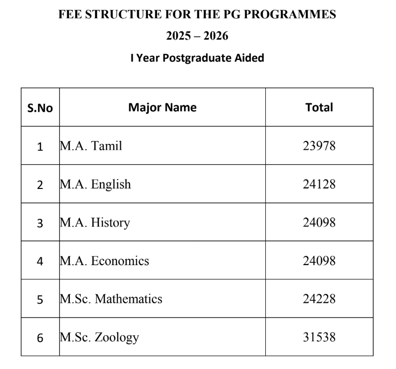 Earlier, M.Sc Mathematics fees at Lady Doak College Madurai was ₹ 22,228 (in 2024) for the entire course duration. This shows a fee increase of ₹ 26,228 over the year.