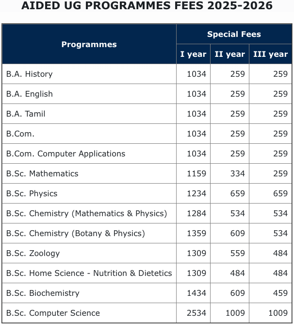 V.V. Vanniaperumal College for Women Virudhunagar BA Tamil Fees