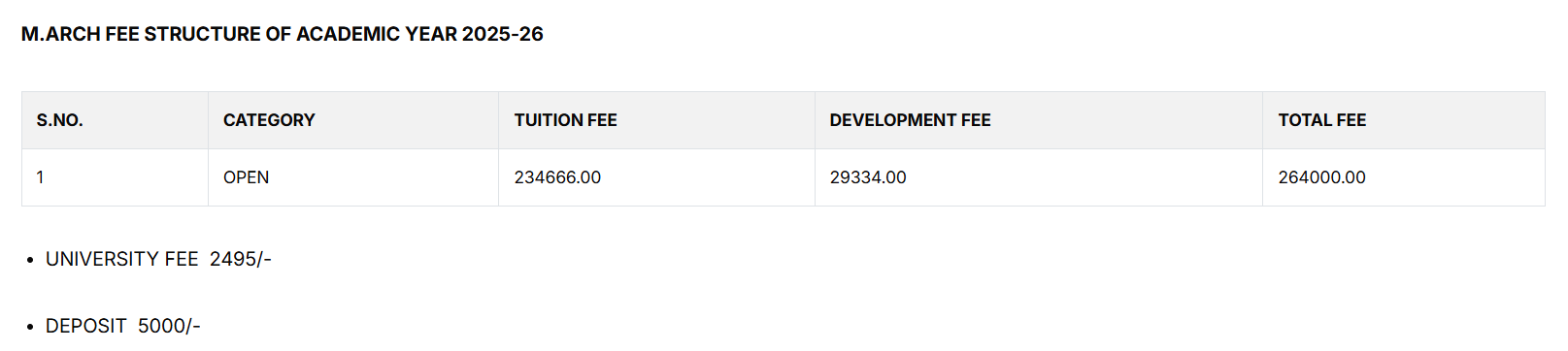| Fee Type | Total Amount (INR) |