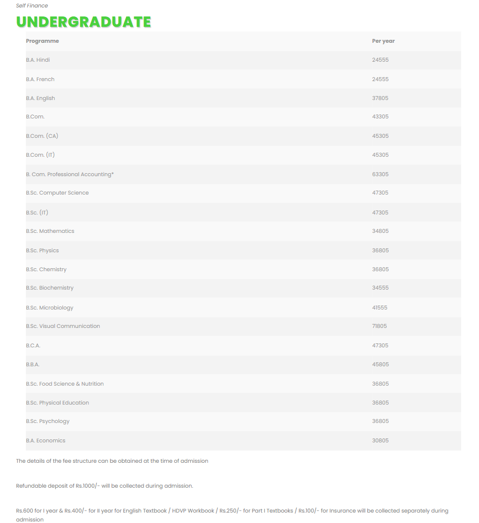 | Fees | Year 1 (in INR) | Year 2 (in INR) | Year 3 (in INR) |